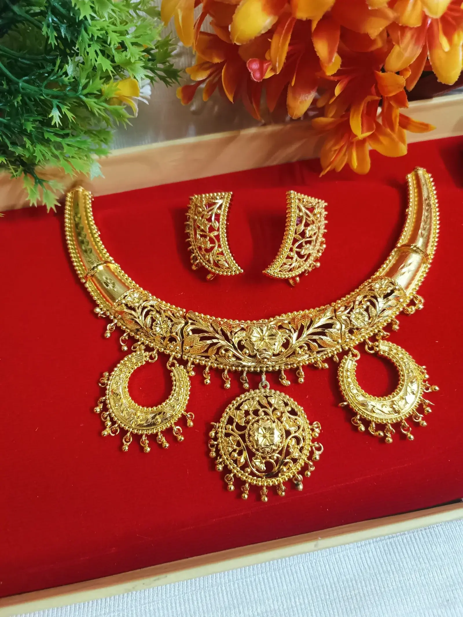 A stunning gold-plated necklace with delicate chain and elegant pendant, perfect for parties and special occasions.