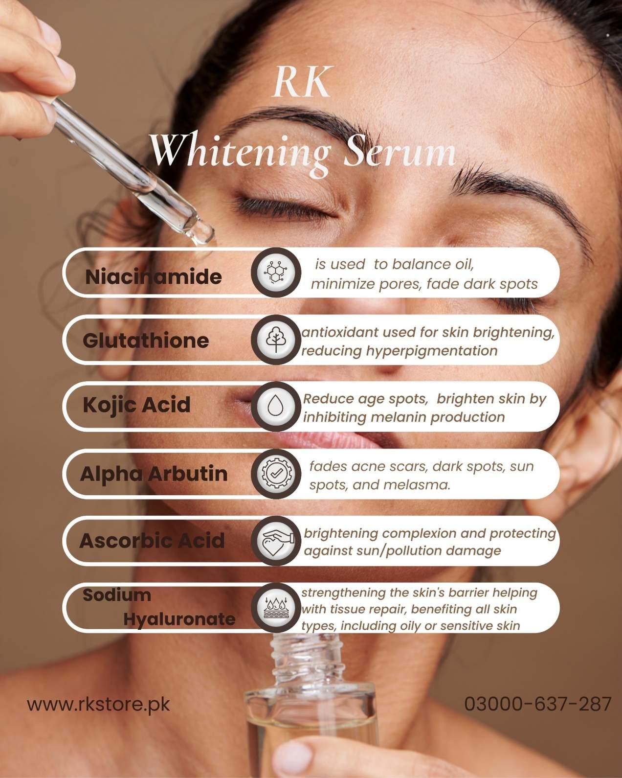Discover a new level of brightness with the RK Whitening Serum—your daily solution for clear, even-toned, and radiant skin.
