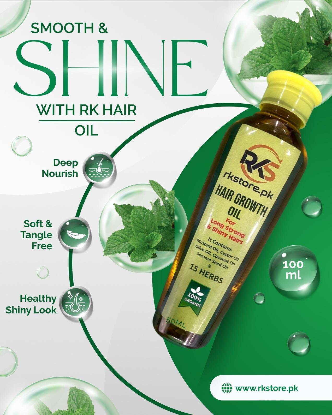 RK Store Hair Growth Oil is a powerful blend of 100% organic oils and 15 natural herbs, specially formulated to nourish the scalp, strengthen hair roots, and promote healthy hair growth. Enriched with time-tested natural ingredients, this oil helps reduce hair fall, improve hair texture, and restore