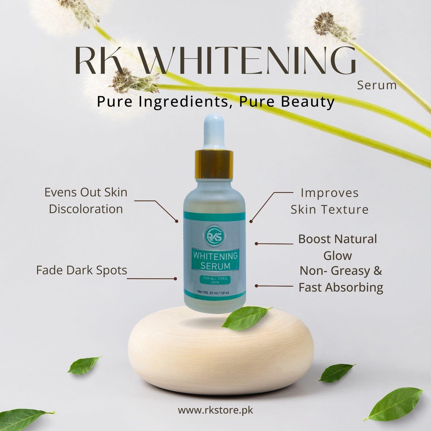 Discover a new level of brightness with the RK Whitening Serum—your daily solution for clear, even-toned, and radiant skin.